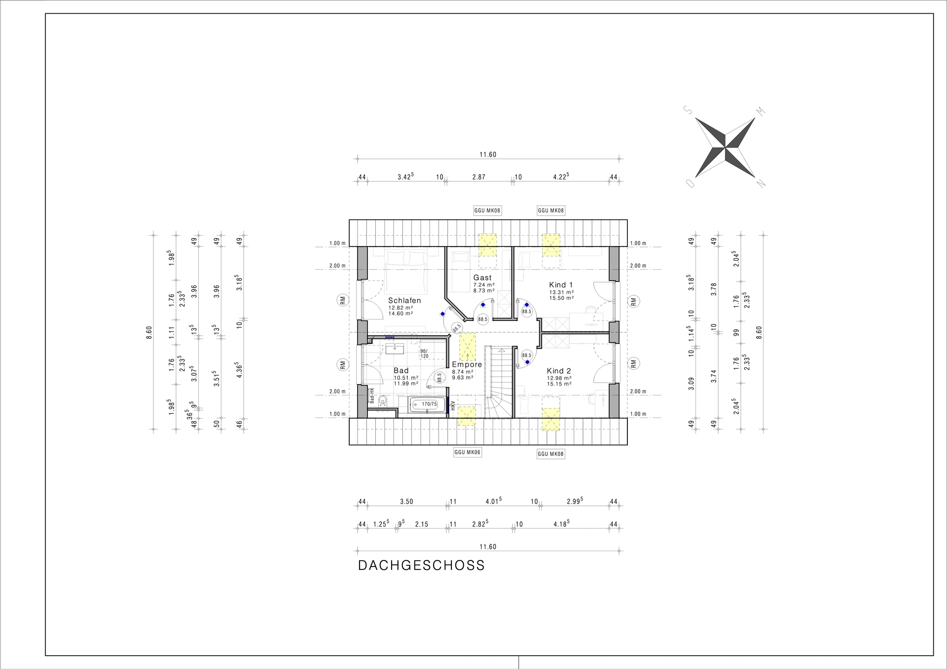 Maße: 8,60 x 11,60 m